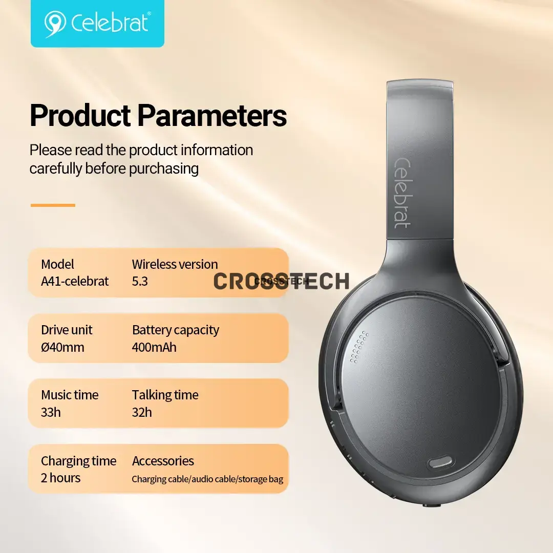 The Celebrat A41 Wireless Headphones are designed for users who want stable Bluetooth connectivity, clear stereo sound, and comfortable all-day listening. Whether you're working, studying, gaming casually, or enjoying music, the A41 delivers balanced performance and dependable wireless audio.